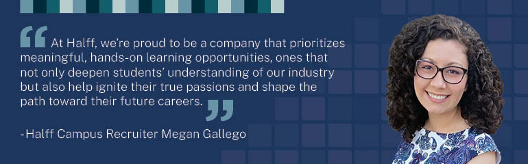 “At Halff, we’re proud to be a company that prioritizes meaningful, hands-on learning opportunities, ones that not only deepen students’ understanding of our industry but also help ignite their true passions and shape the path toward their future careers,” says Campus Recruiter Megan Gallego.